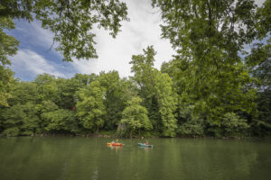 It was the first real heat wave of the summer, with temperatures in the nineties, and it was Women’s Weekend! We were busy all day. Before I realized how late it was, staff at Rothrock’s Mill called to inform me that one boat and one person had missed the last pickup and grace period.