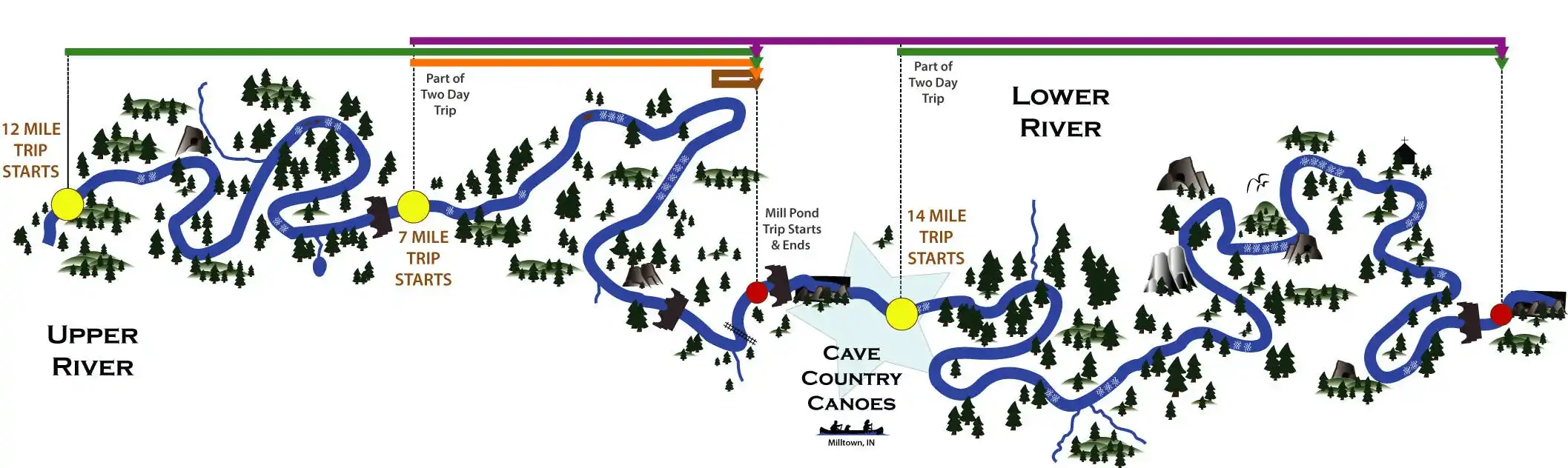 Give Cave Country Canoes a call at 812-633-4806 for a group reservation. Group number may be approximate at the time of your call. We can always adjust numbers closer to arrival. A deposit of $100 will secure a reservation for any group, no matter the size. The group leader will need to make one payment for everyone 24 hours prior to your arrival. - Print & Sign Waivers & Complete Group Sheet